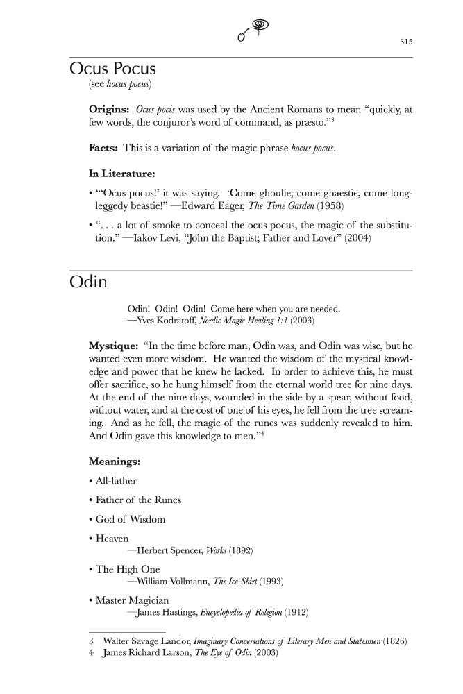 • "'Ocus pocus!' it was saying. 'Come ghoulie, come ghaestie, come longleggedy beastie!" -- Edward Eager, The Time Garden (1958)